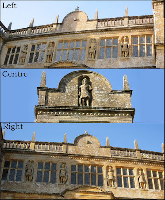 All the pictures in this post were taken on the same day in August 2019, at three different churches - Langport, Long Sutton and Huish Episcopi - the carvings on which date from circa 1450, 1490 and 1500 respectively. The ape-demon shown above, for example, is clinging to the tower of Long Sutton church - as you can see more clearly in the following wider-angle view, which also includes a vaguely pig-like face looking straight at you: